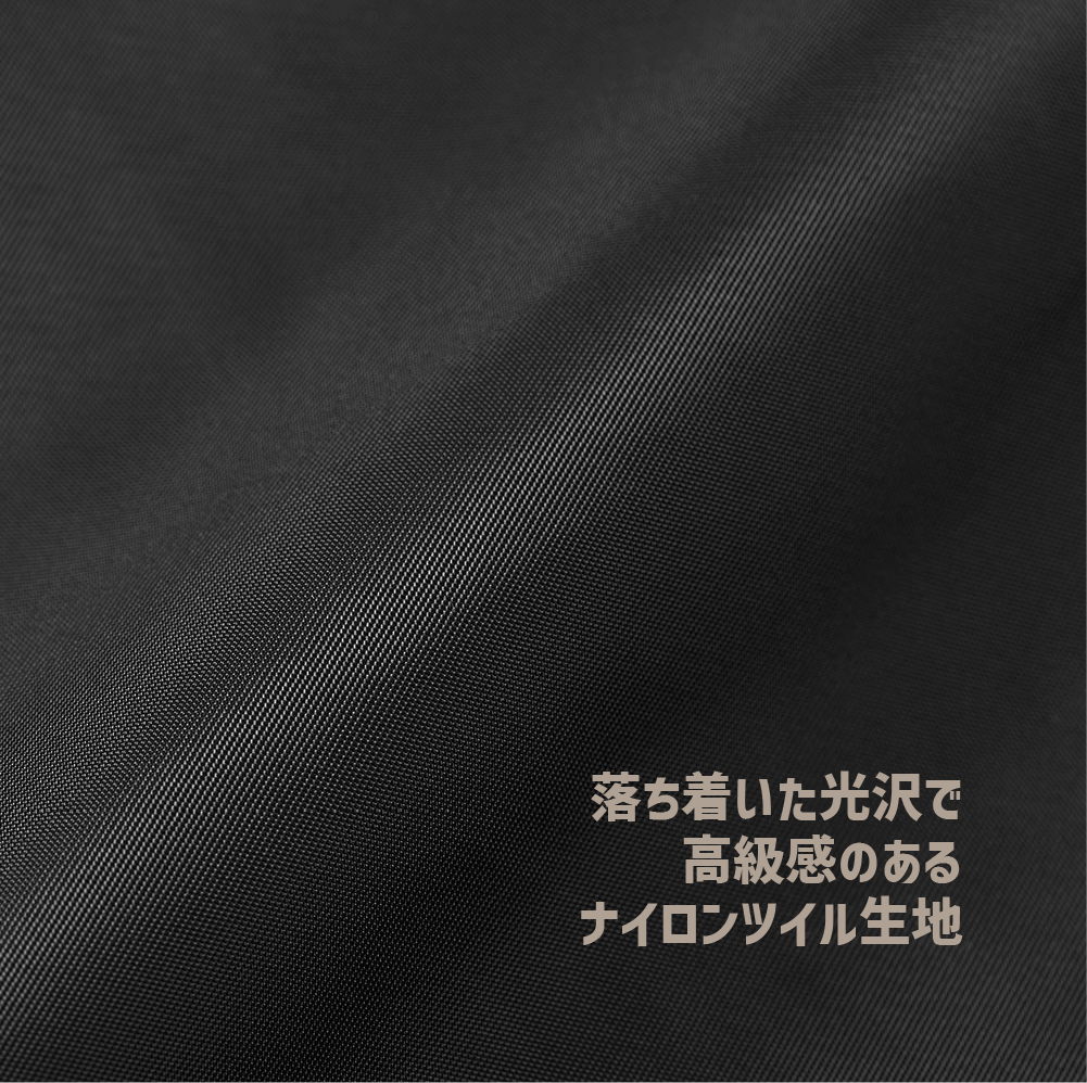 表地にはナイロン素材を採用し、落ち着いた光沢感で高級感のある雰囲気が特徴。